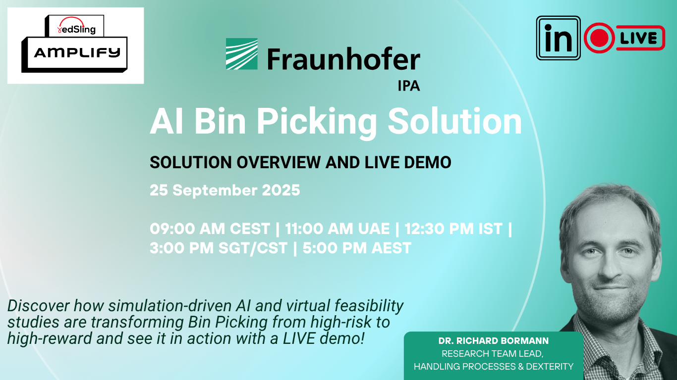 Discover how simulation-driven AI and virtual feasibility studies are transforming bin picking from high-risk to high-reward — and see it in action with a LIVE demo.